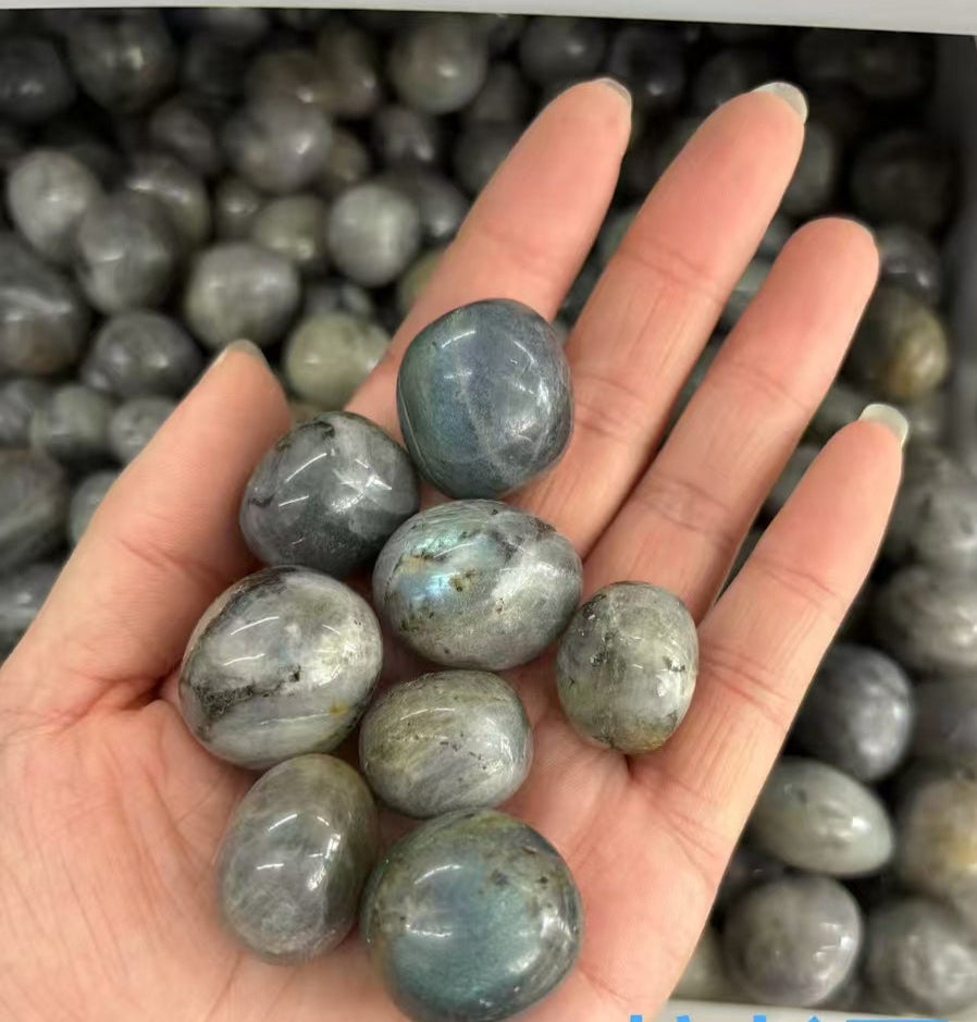 15-20mm Iridescent Gray Labradorite Tumbled Stones - 1kg Mystic Shield Crystals Bulk