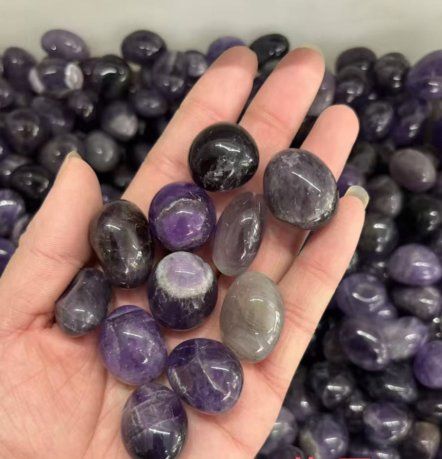 Dream Amethyst Tumbles 15-20mm per kg! Lavender crystals for third eye & intuition. Ethically sourced bulk stones with phantom inclusions.