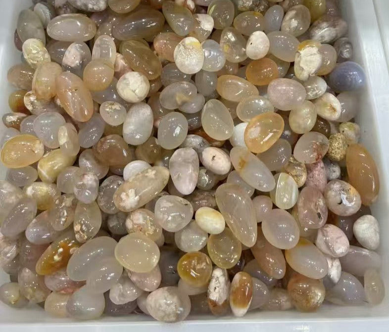 Enchanting 15-20mm Cherry Blossom Agate Tumbled Stones - 1kg Bulk Heart Healing Crystals (Pink-White Floral Patterns, Madagascar)