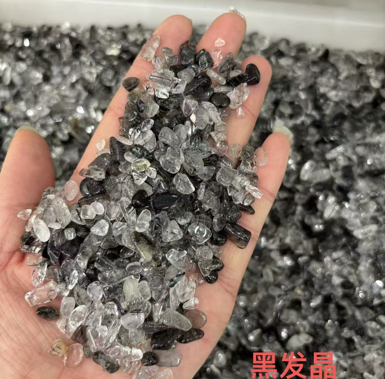 5-7mm AA Grade Natural Black Rutiled Quartz Chips -1kg-Bulk price