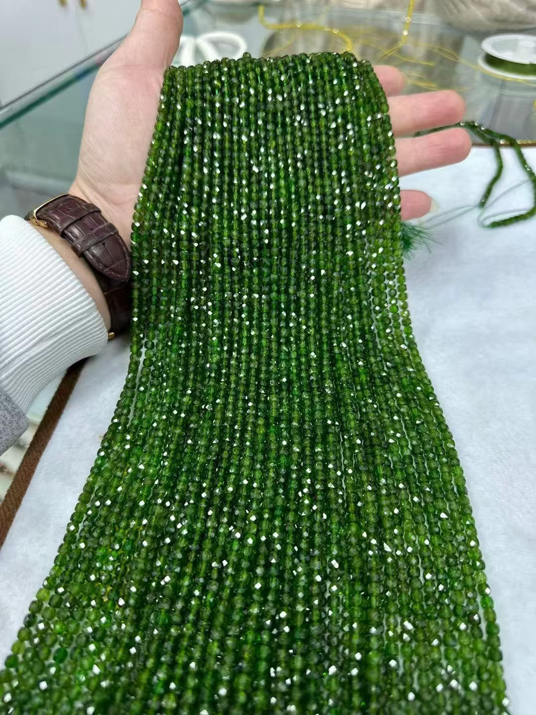 A+Quality Green Diopside Sugar Cube Faceted Bead Strand4mm|Stunning Sparking Crystal Beads For Jewelry Making