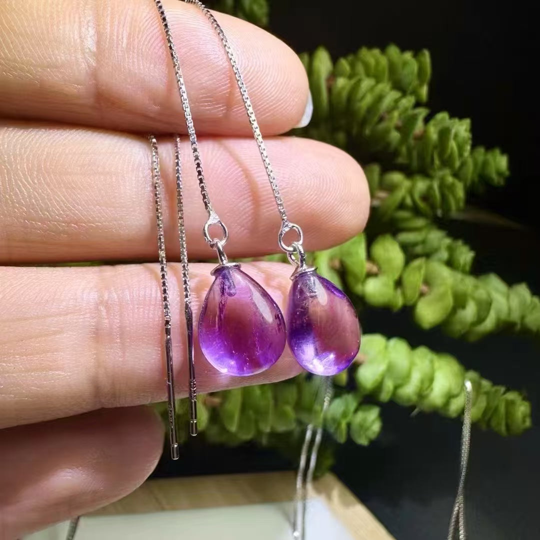 Drape yourself in royal elegance with these hand-selected amethyst teardrop earrings, natural violet gemstones suspended from premium 925 sterling silver.