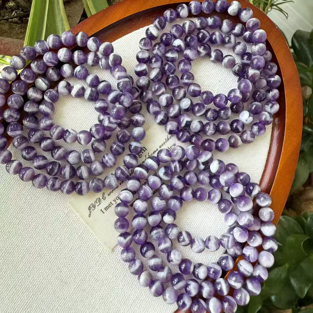 Natural Amethyst Beads: Sourced from Brazil’s mineral-rich mines, each 6mm round bead is hand-polished to enhance its intracellular clarity and soft violet glow. Unlike dyed alternatives, natural variations in hue confirm authenticity .
