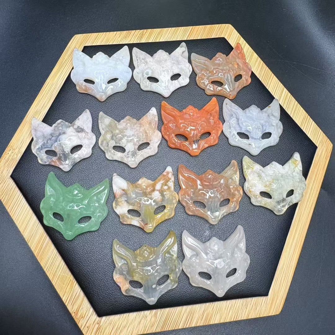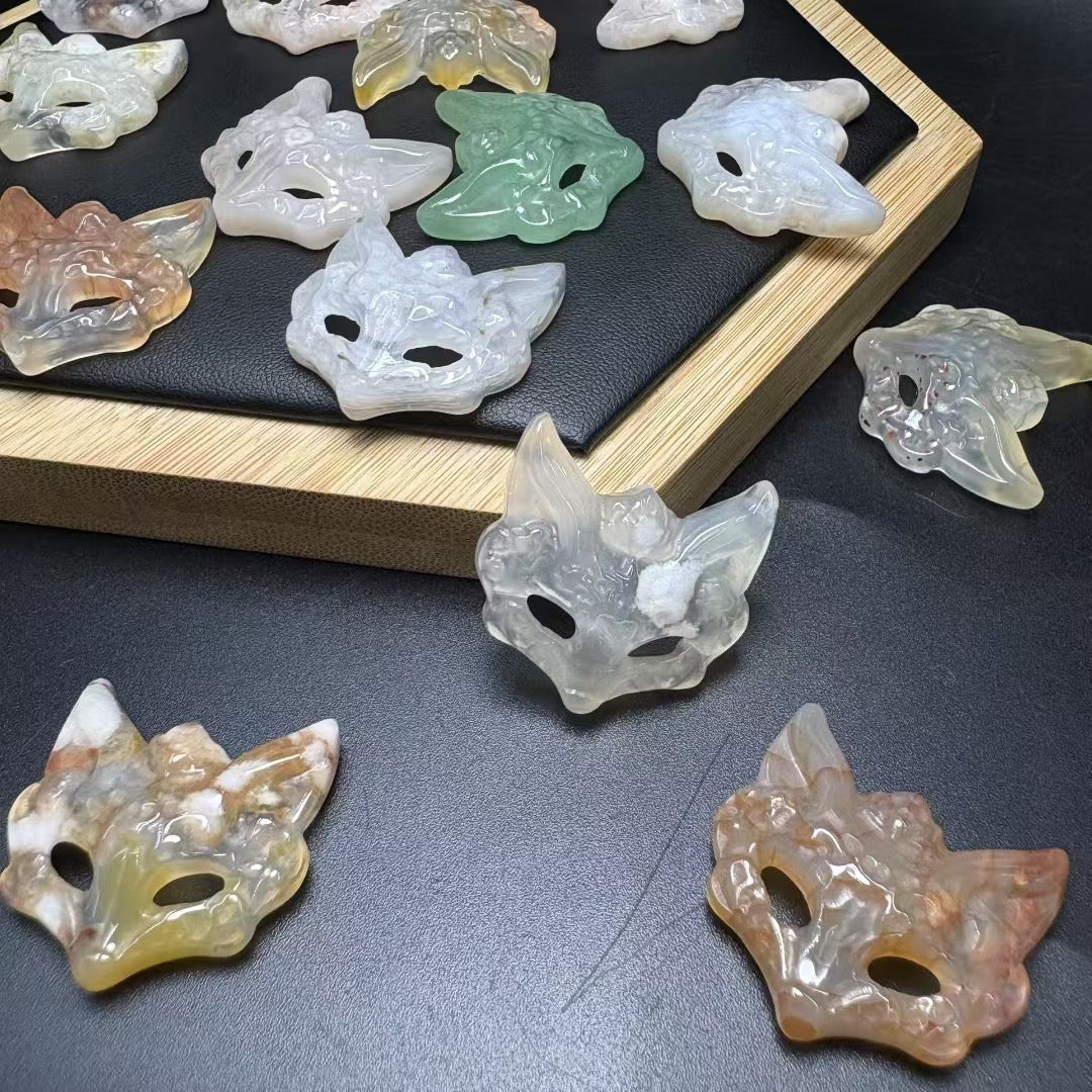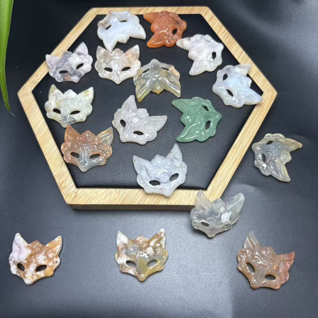 Enchanting Sakura Agate Spirit Fox Mask Pendant - 30mm Mystical Undrilled Charm for DIY Jewelry (Wholesale Price)