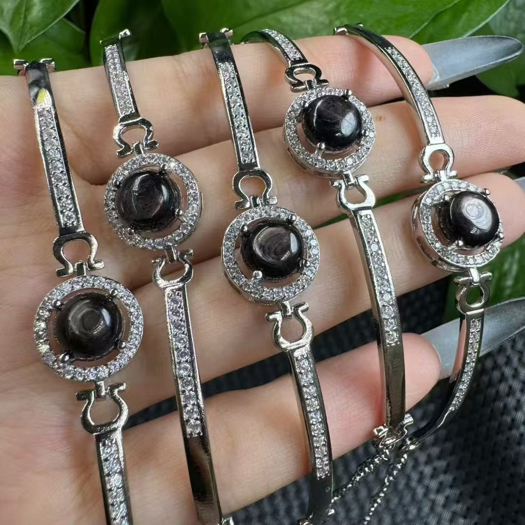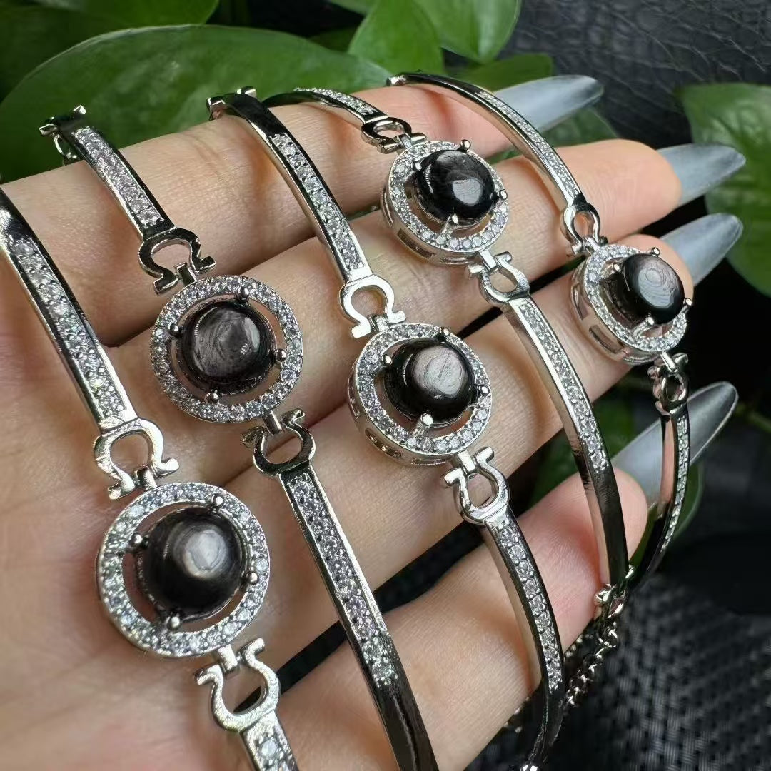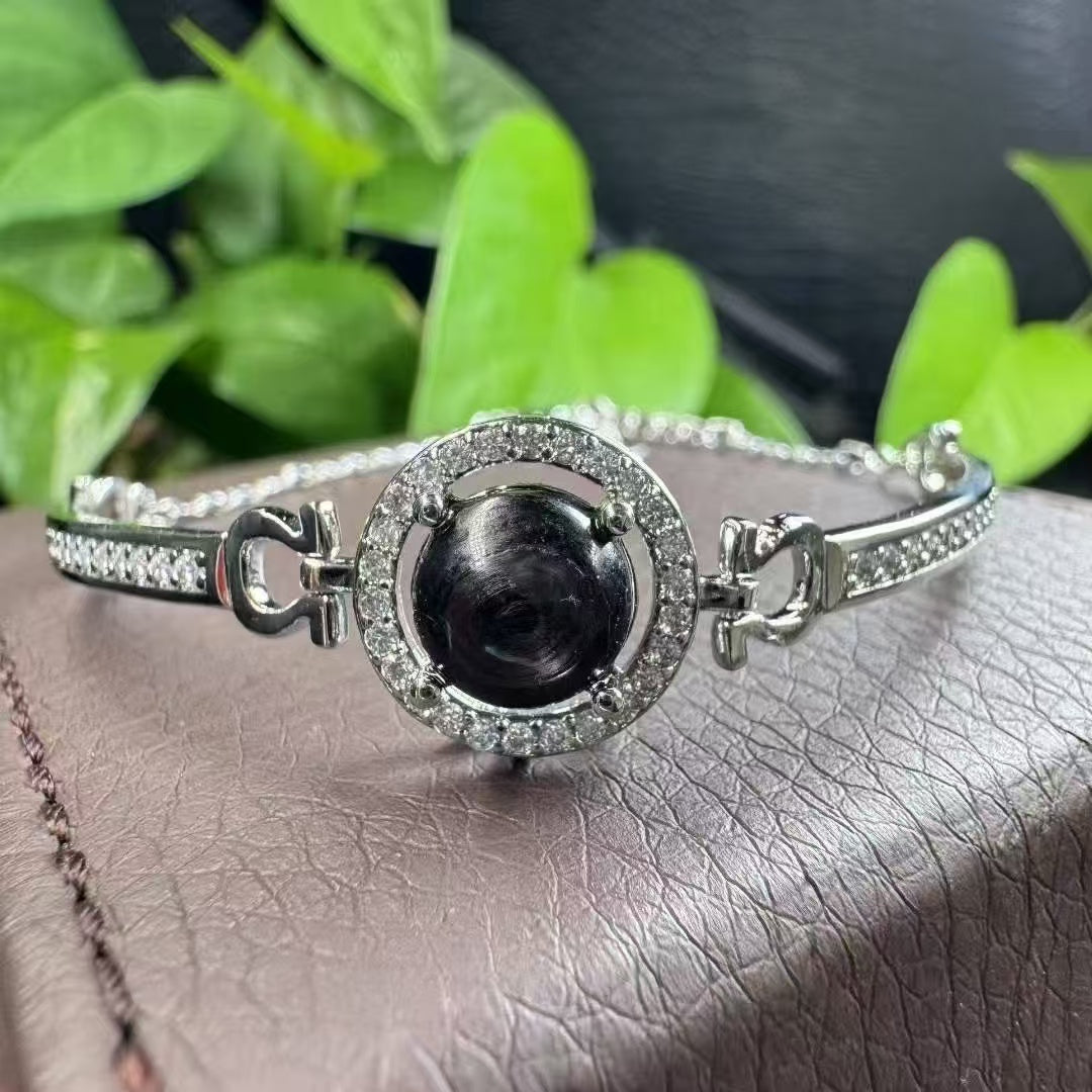 Natural Hypersthene Cabochon: Sourced from India or Canada, this round cabochon exhibits a deep gray-black base with golden-bronze flashes (schiller effect) when moved under light. Each stone is unique, with natural inclusions confirming its authenticity.