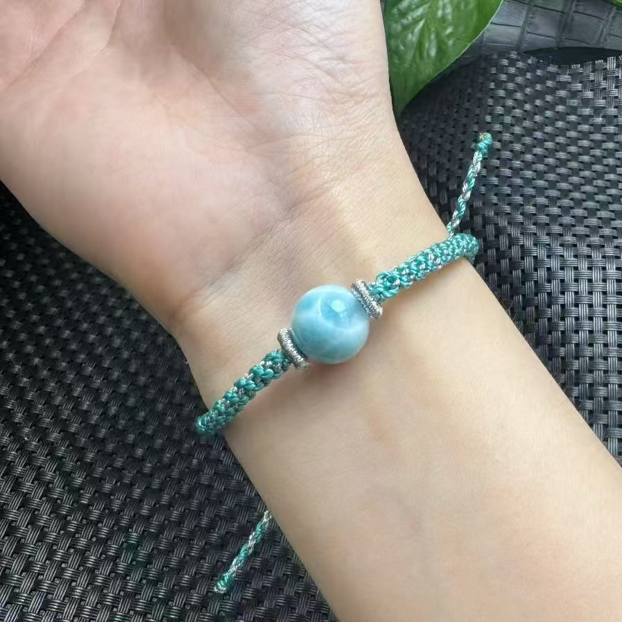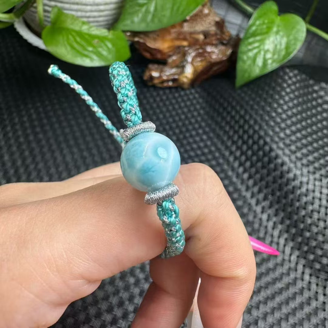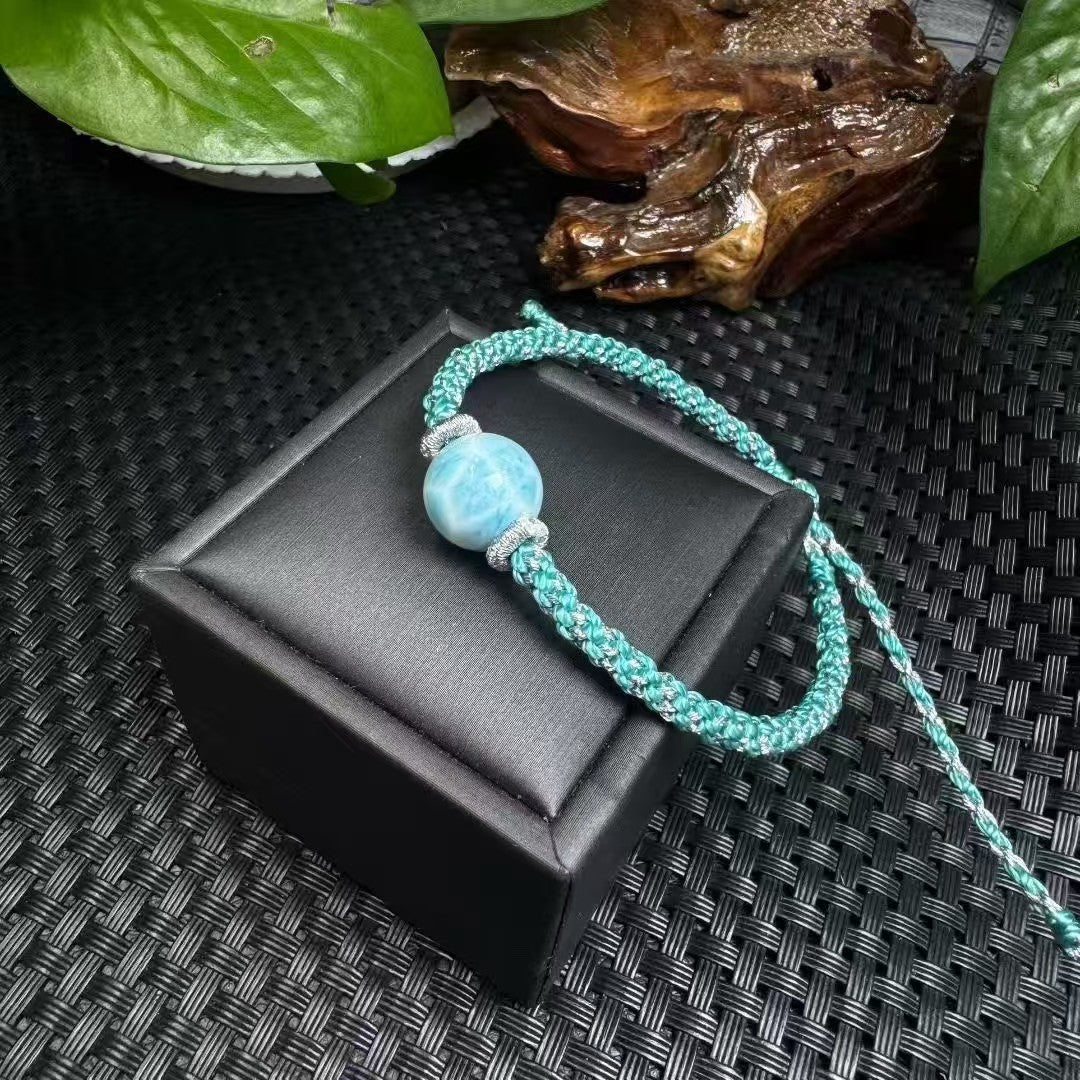 Capture the essence of the Caribbean sea with our exquisite Larimar Sea Wave Bracelet. This beautifully handcrafted piece features a genuine 10mm Larimar bead sourced exclusively from the Dominican Republic, skillfully wrapped and tied onto an adjustable handmade cord. Larimar, also known as the "Dolphin Stone" or "Atlantis Stone," carries the soothing energy of the ocean, making it a perfect talisman for emotional healing and peaceful communication.