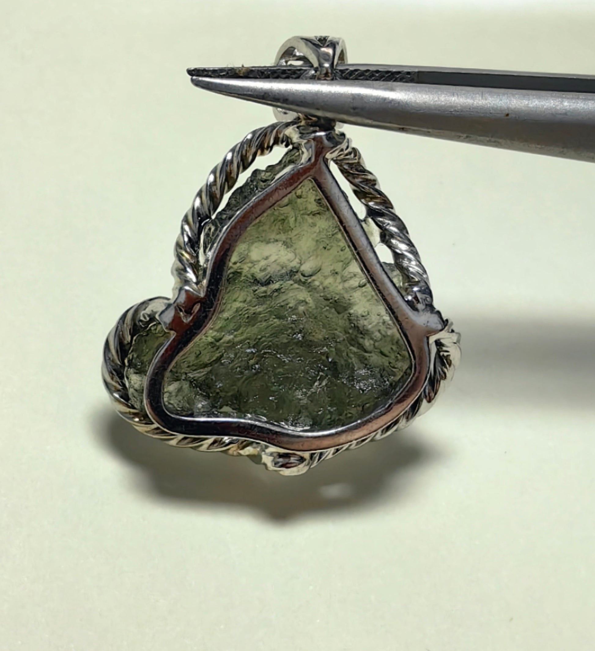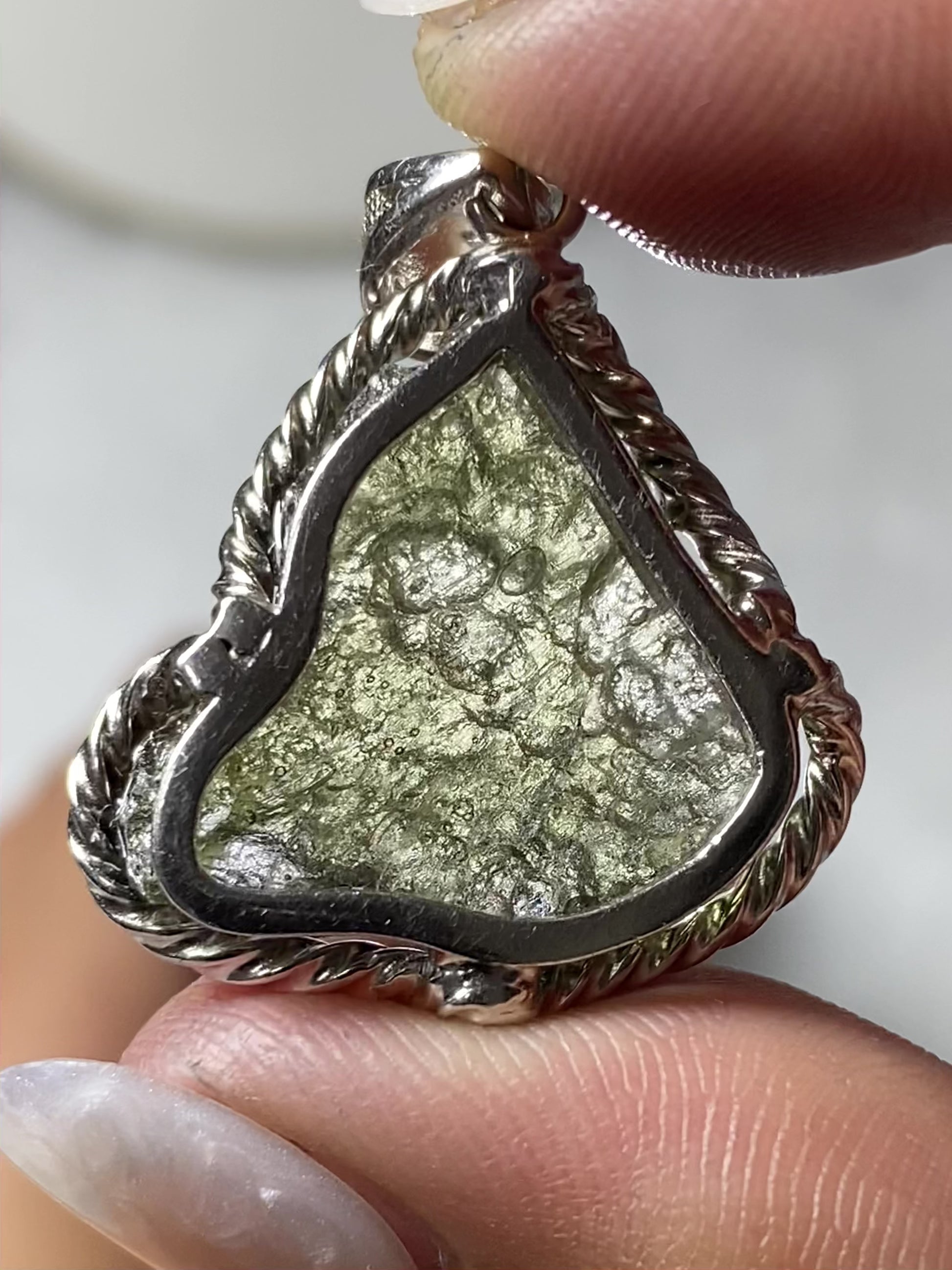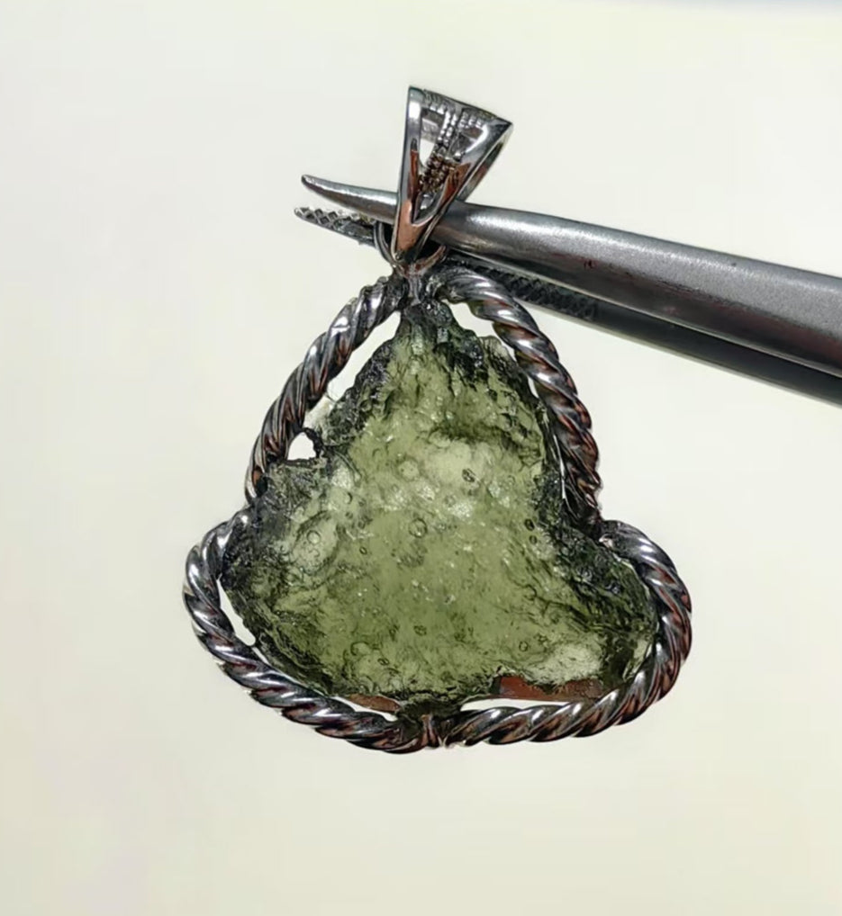 Raw Moldavite Pendent With S925 Hand Wrapped
