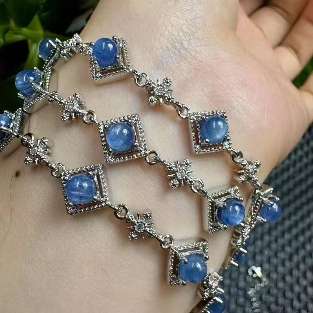 Copper Setting & Chain: The oxidized copper bezels and chain enhance kyanite’s energy conductivity. Copper is historically linked to healing, amplification of intention, and earthy elegance. The bracelet develops a natural patina over time, adding vintage character.