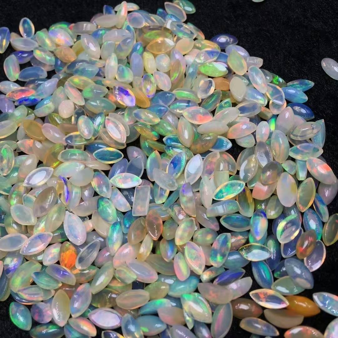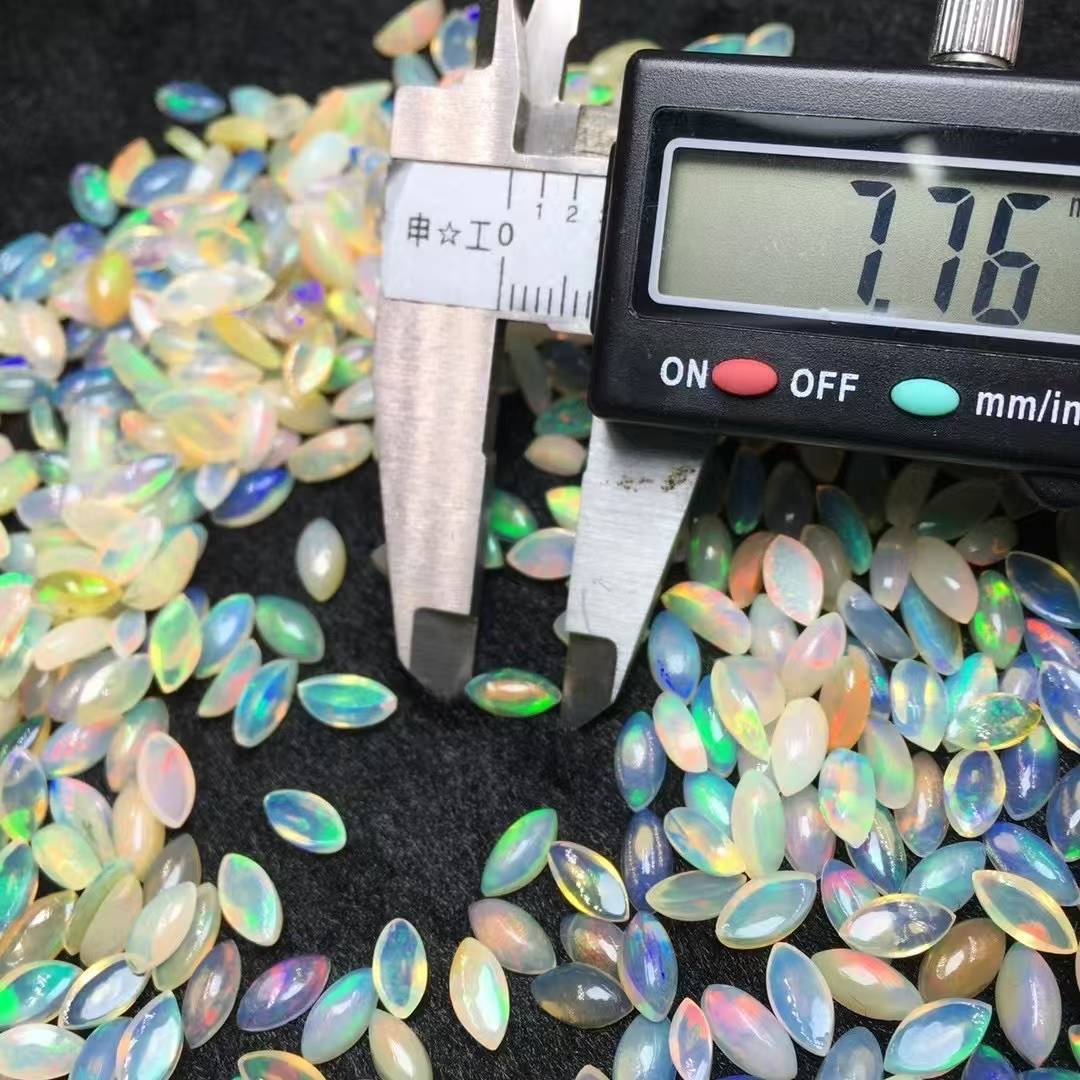 Hand-selected natural opal cabochon with vibrant play-of-color, expertly cut into a timeless marquise shape (approx. 4x8mm). Perfect for crafting bespoke rings, pendants, or earrings that capture ethereal beauty.