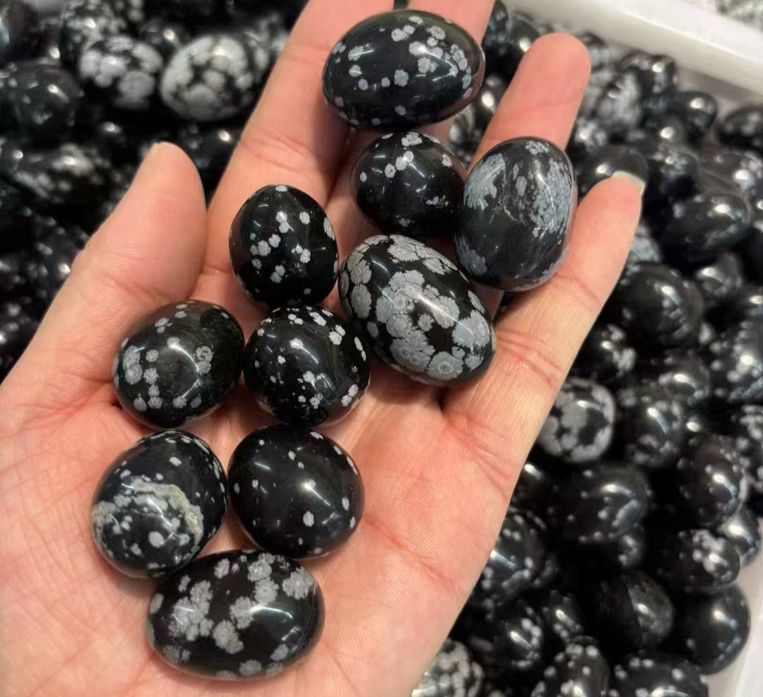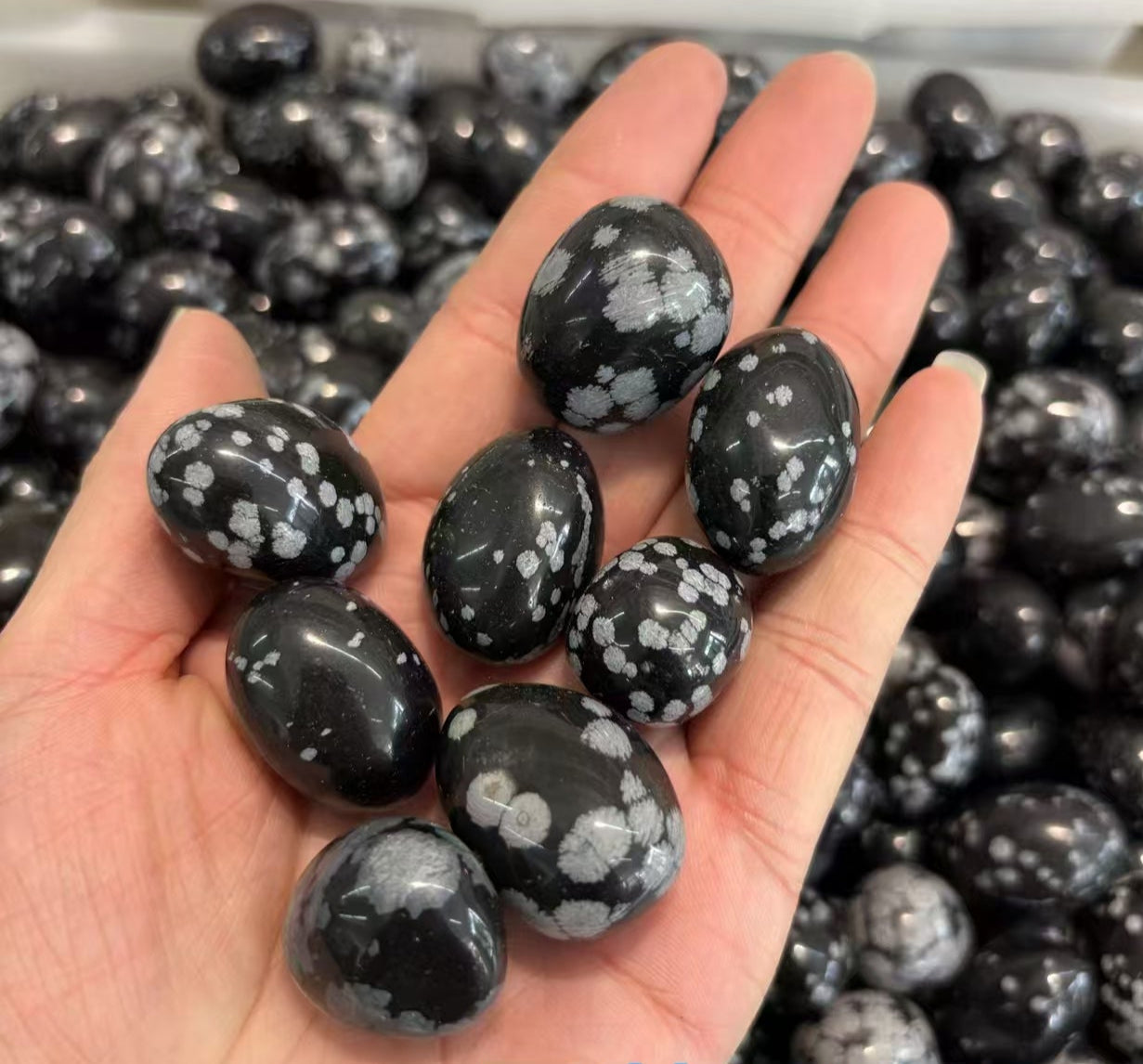 Harness the power of volcanic forces with our 20-30mm Natural Snowflake Obsidian Tumbled Stones. Each stone features striking white "snowflake" patterns on deep black volcanic glass, polished for a smooth, high-gloss finish. Ideal for spiritual grounding, emotional balance, and energy shielding.