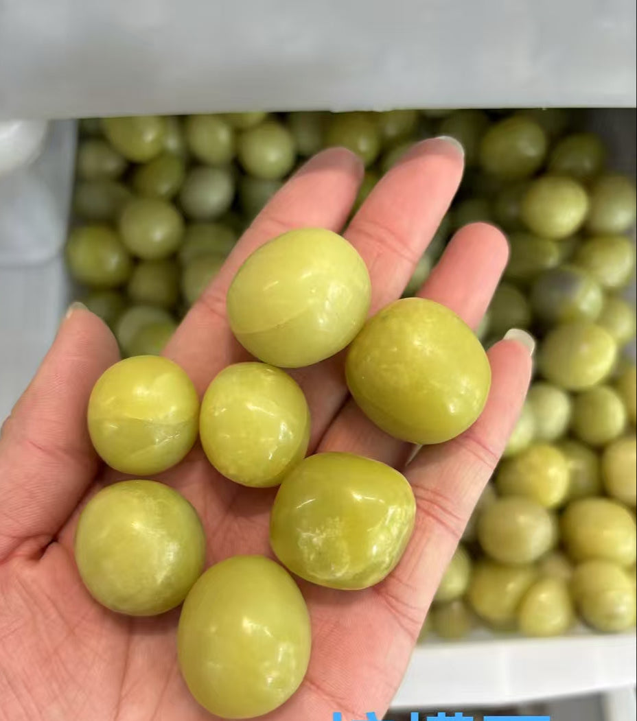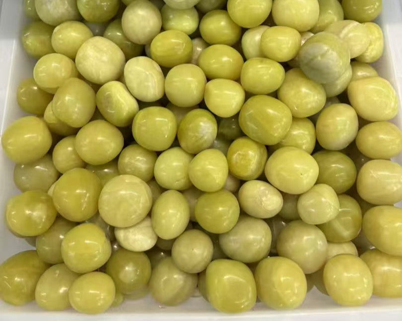 Harness the vibrant energy of natural Lemon Jade (calcite-based) with our 20-30mm high-gloss tumbled stones. These radiant yellow gems promote mental clarity, creativity, and emotional upliftment – perfect for crystal grids, jewelry, or home decor.