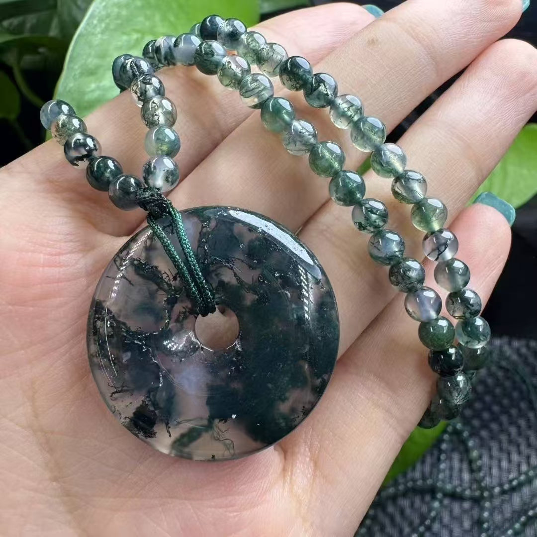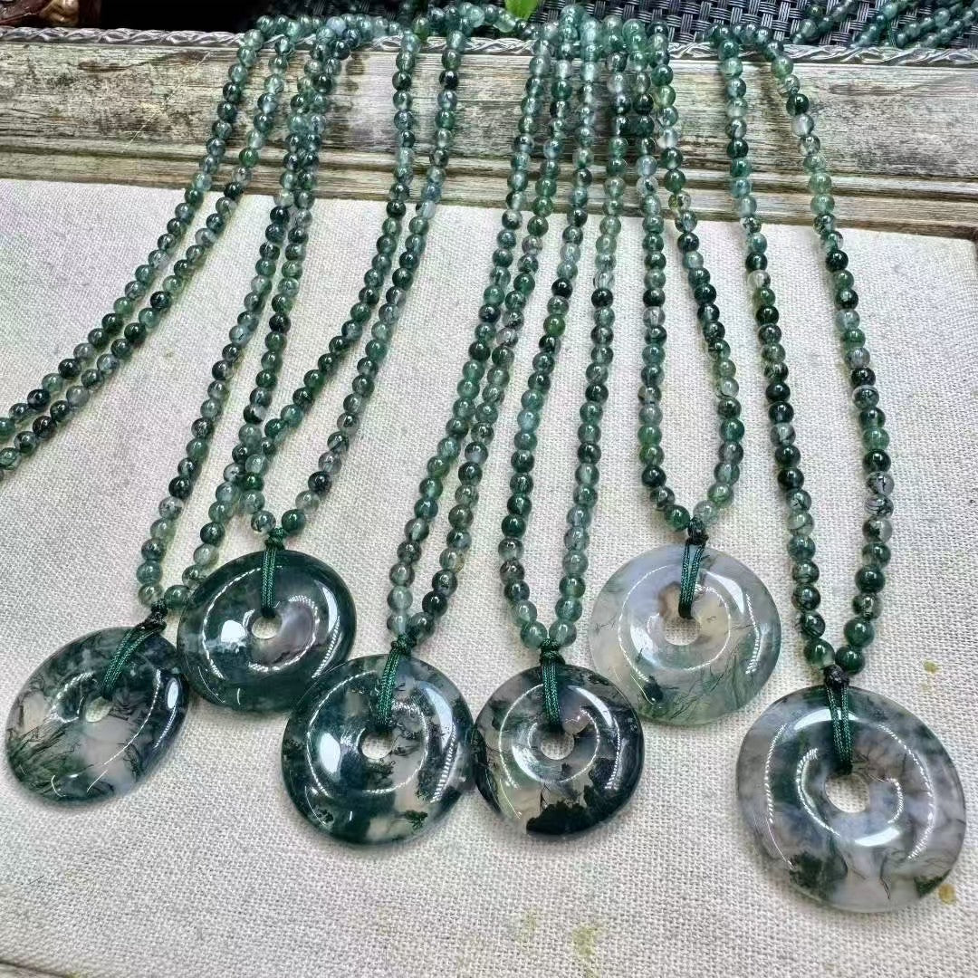 Zen Moss Agate Disc Pendant & Bead Necklace - Natural Botanical Jewelry|Bulk Price